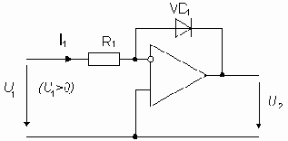 На рис. 24 приведена схема простейшего логарифмирующего преобразователя. Эта схема очень проста, но имеет много недостатков, в частности большие отклонения от логарифмической зависимости и дрейф выходного напряжения при изменениях температуры.